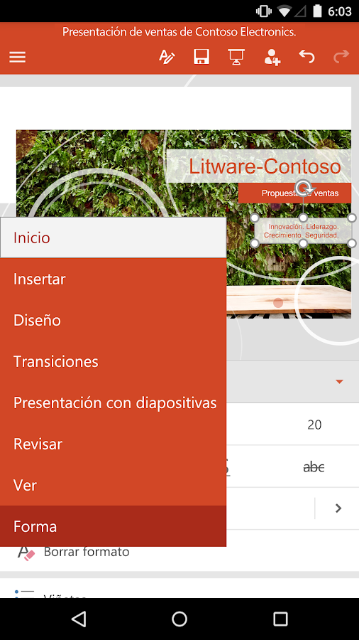 • Las presentaciones de PowerPoint se ven muy bien, igual que en el ordenador.